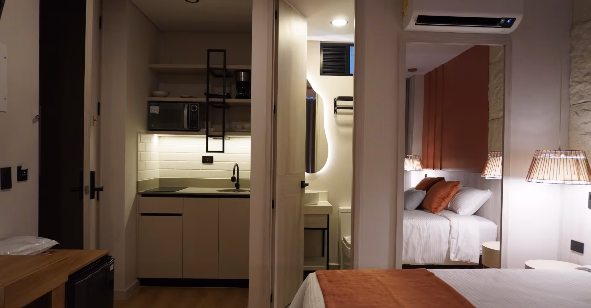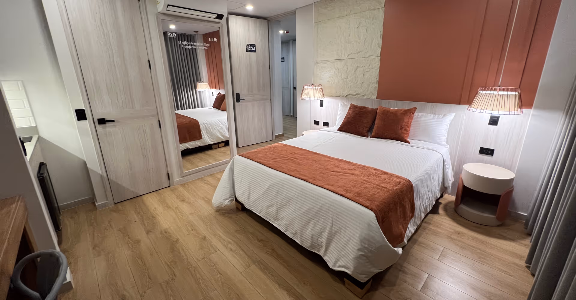 Conexión, calidez y equilibrio. Inspirada en la fuerza y practicidad, la Suite Standard ofrece un ambiente acogedor con texturas orgánicas, colores cálidos y materiales nobles. Es el espacio perfecto para reconectar contigo mismo en medio del ritmo vibrante de Medellín.