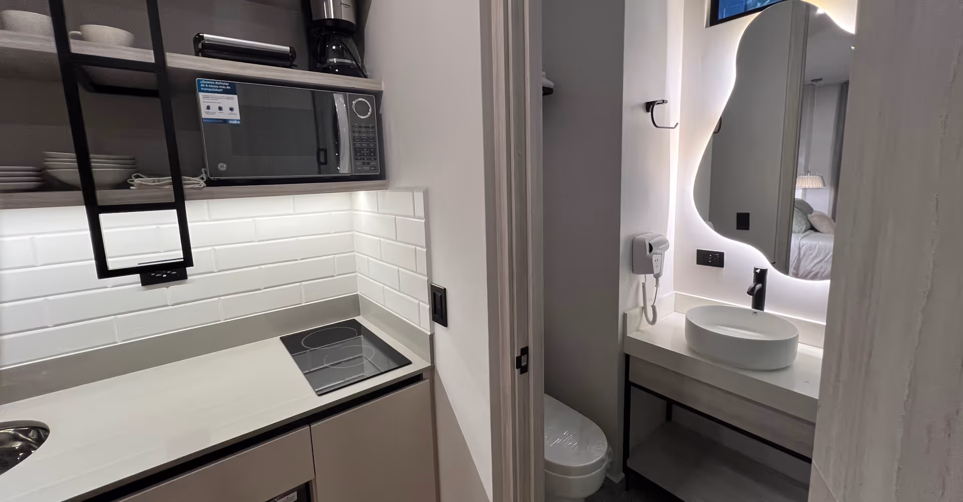 Silencio, introspección y abrigo. La Suite Superior evoca la suavidad de la niebla y el misterio de lo sutil. Sus tonos neutros, iluminación tenue y diseño envolvente crean una atmósfera de calma absoluta, ideal para quienes buscan una experiencia tranquila, en pareja o familia.